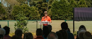 Ceremony held to dedicate MGA Intermural Fields to memory of Douglas Davis.